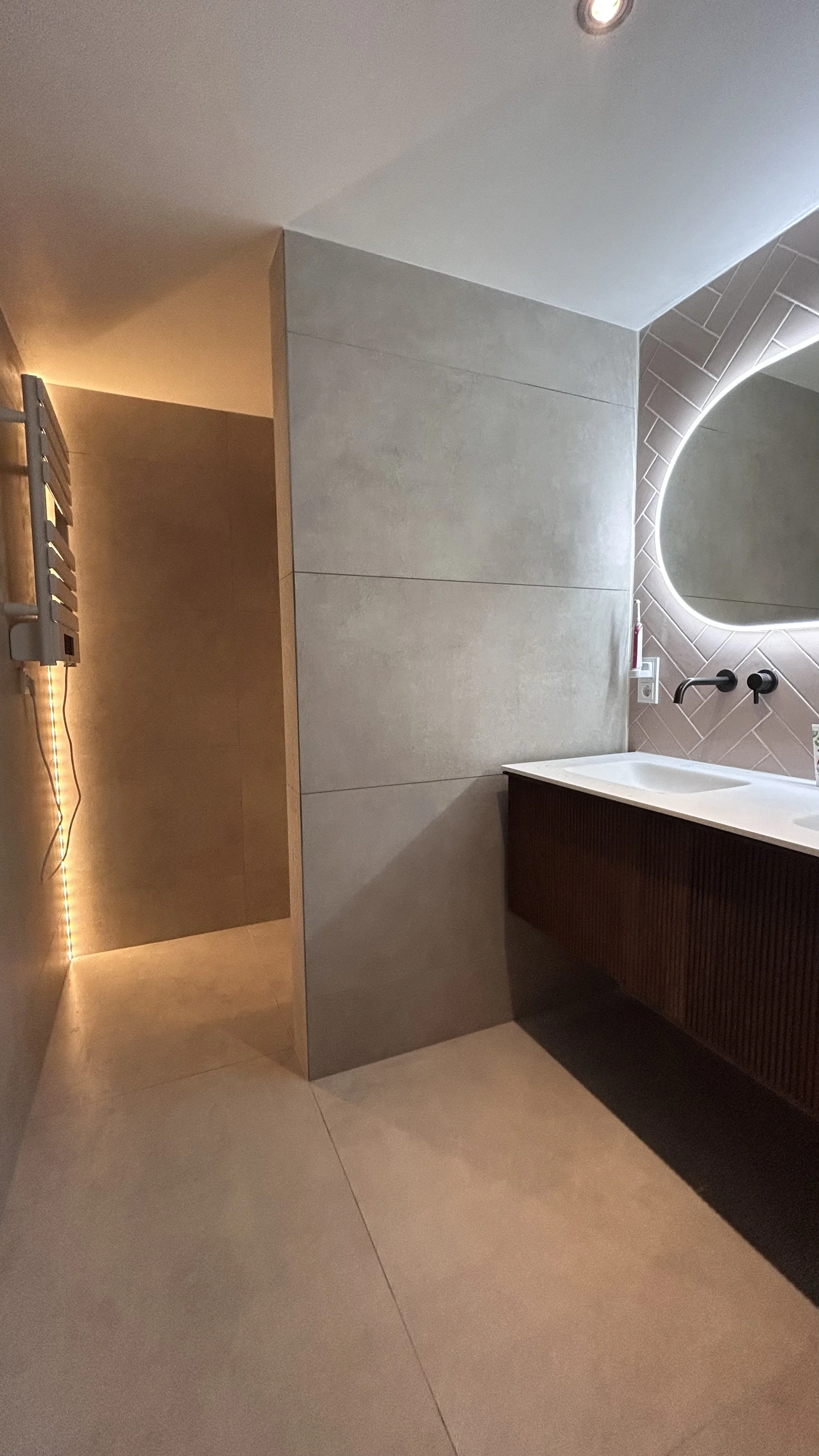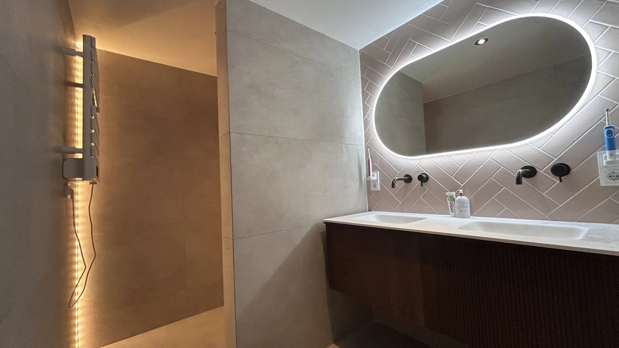 Onlangs hebben wij een complete badkamer met twee toiletten gerenoveerd. Dankzij zorgvuldig denkwerk, vakmanschap en oog voor detail is een magnifiek eindresultaat gerealiseerd. Het project straalt luxe en verfijning uit, met perfectie in elk detail.