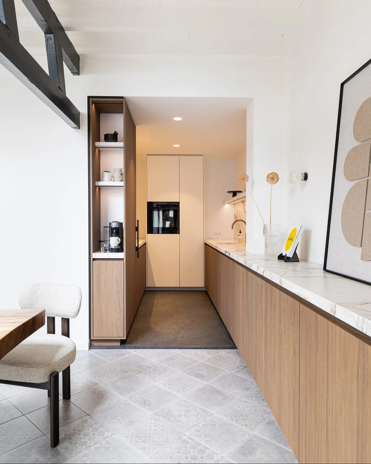 Vranken Installatie en Montage is uw betrouwbare partner voor al uw grootformaat tegelwerken. Dankzij onze deskundige ervaring en het gebruik van hoogwaardige gereedschappen kunnen wij elk formaat tegel vakkundig plaatsen. Of het nu gaat om tegels van 120x120 cm of indrukwekkende XXL slabs: wij realiseren een strak en duurzaam resultaat dat volledig aansluit bij uw wensen. Grootformaat tegels vragen om precisie en vakmanschap, en met onze moderne technieken en oog voor detail bent u verzekerd van een perfect afgewerkt project. Samen met u verwezenlijken wij uw droominterieur, waarbij kwaliteit, esthetiek en klanttevredenheid altijd vooropstaan.